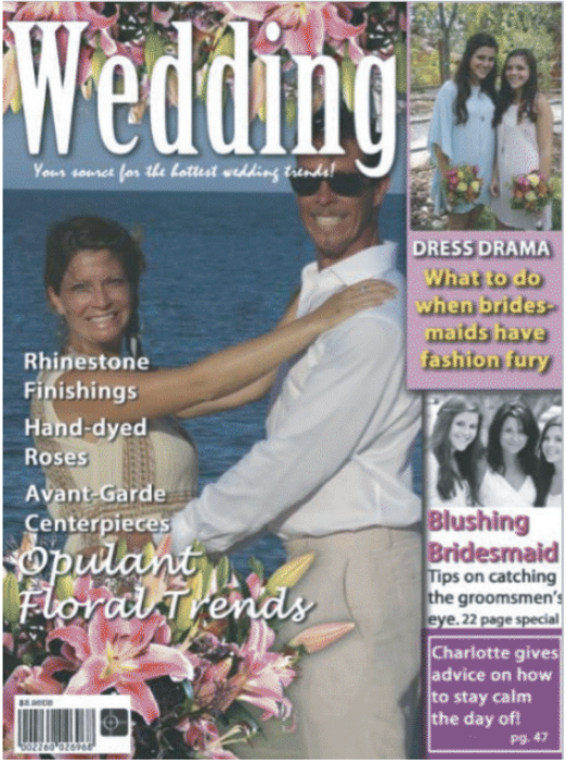 Wedding magazine cover featuring floral trends and bridal fashion insights.